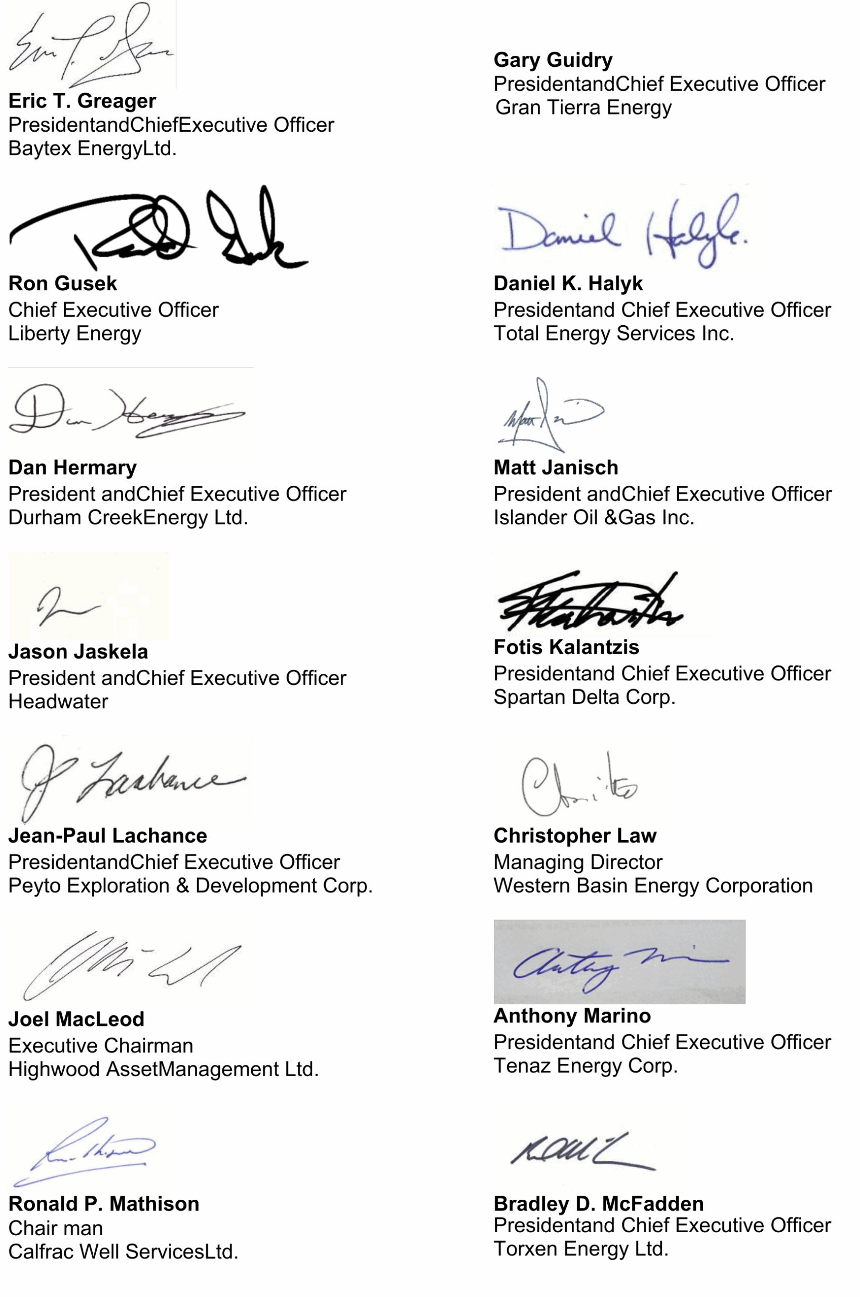 Our call to action is urgent, with persistent indicators that the Canadian economy is moving in the wrong direction. The need to improve productivity and create jobs requires swift and decisive action. Canada is blessed with an enviable abundance of oil and natural gas resources and has the expertise to develop them in a manner consistent with environmental responsibility, social values, and working with Indigenous groups for the benefit of Canada and Canadians. As leaders of this sector, we have consistently advocated for the changes required to unwind the past decade of increasing policy complexity and uncertainty that led to delayed investments, lost opportunities and a competitive disadvantage on the global energy stage.