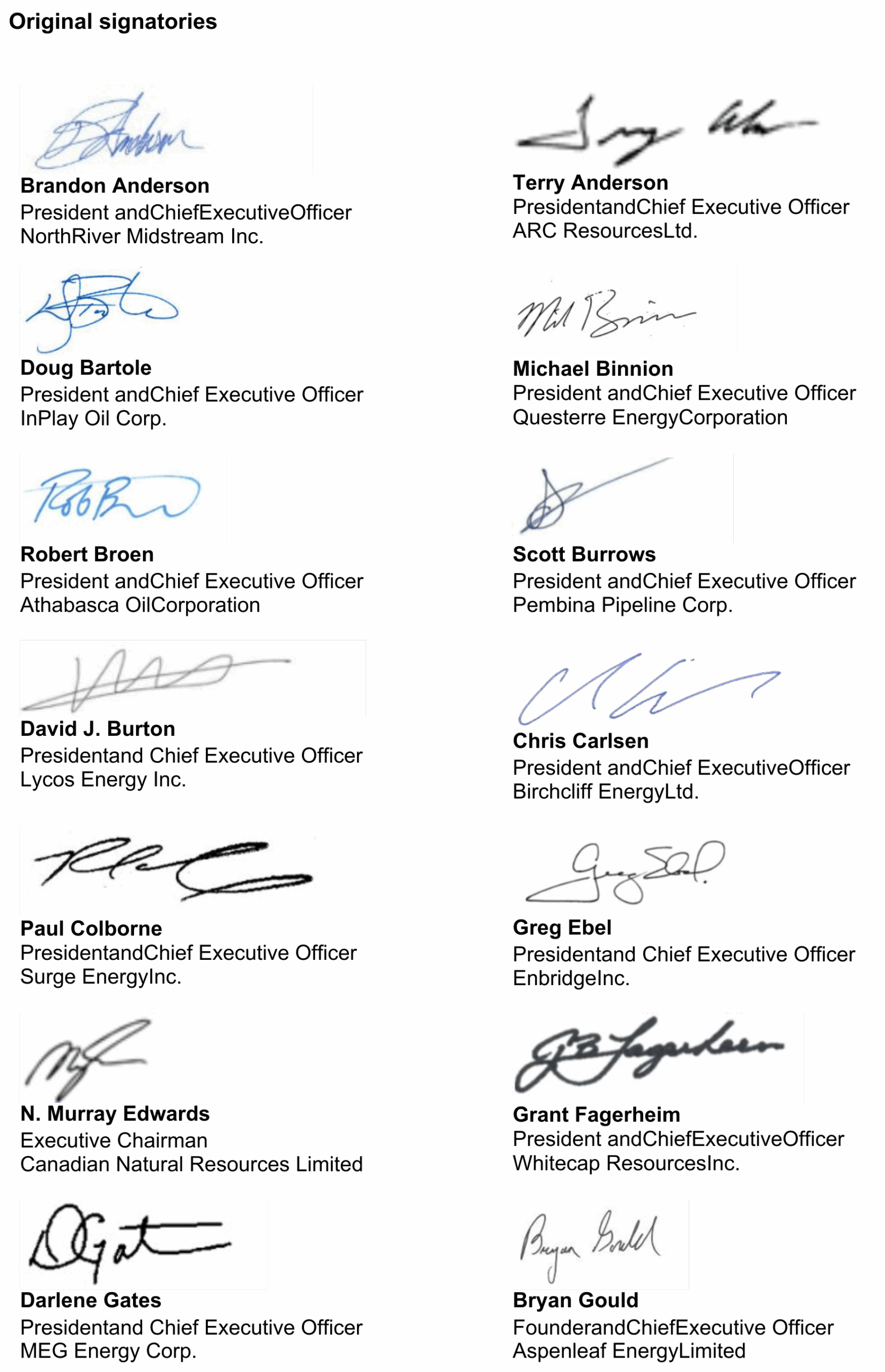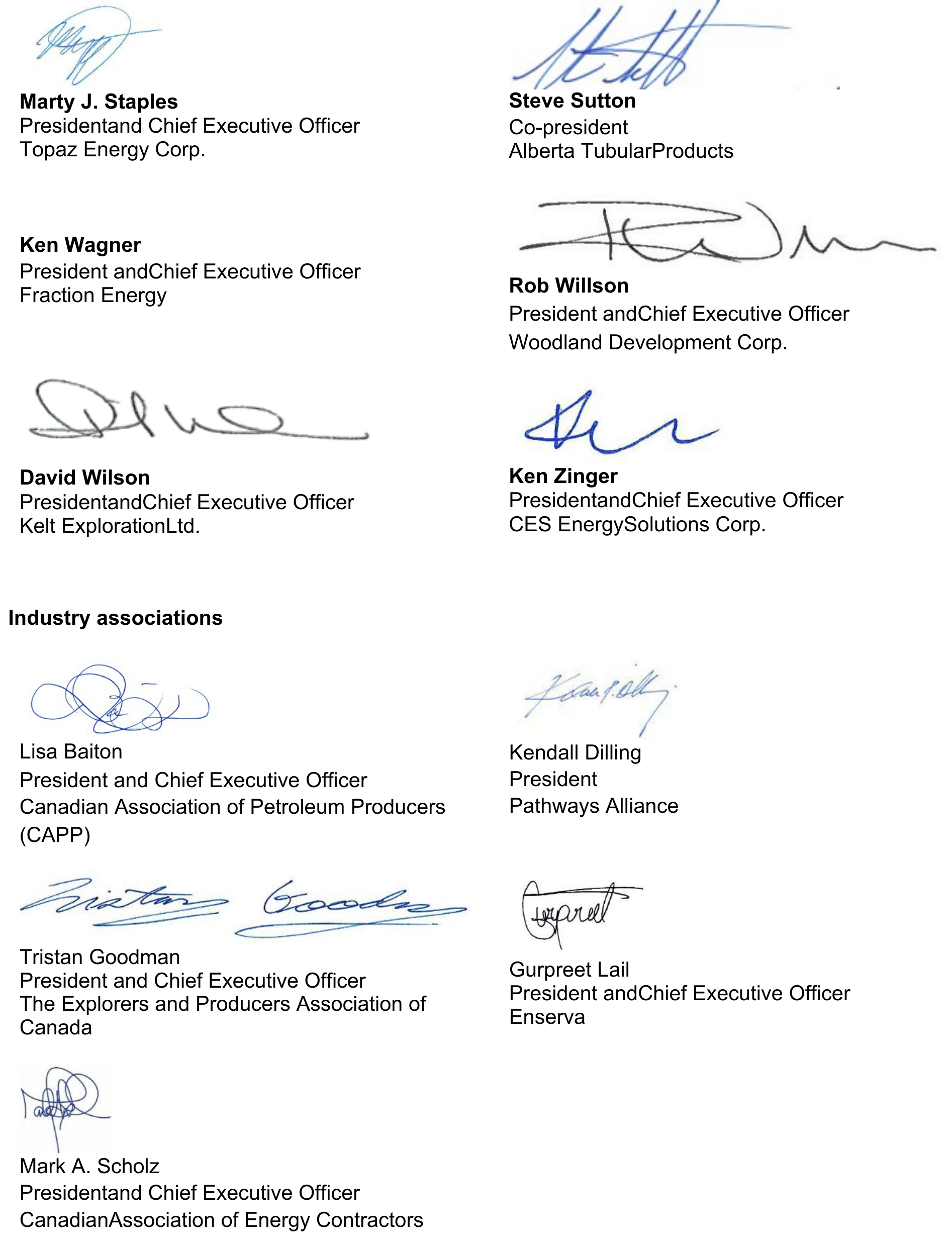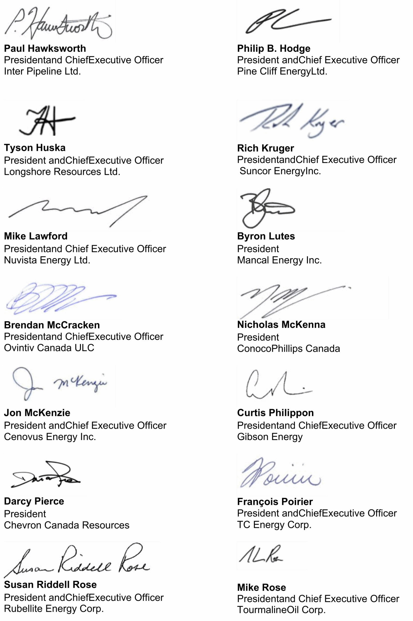As Parliament resumes for the Fall sitting, the energy industry remains committed to working with you, your cabinet, and the provinces on an urgent basis to achieve the energy sector’s potential for the good of Canada. Together, Canada can become the global energy superpower we all envision. We look forward to your response.